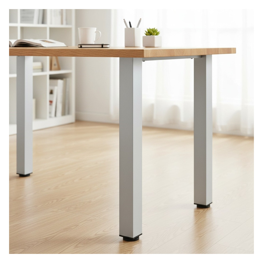 Estas patas regulables permiten montar mesas personalizadas de forma rápida y segura, siendo ideales para escritorios, mesas de trabajo o mesas auxiliares.