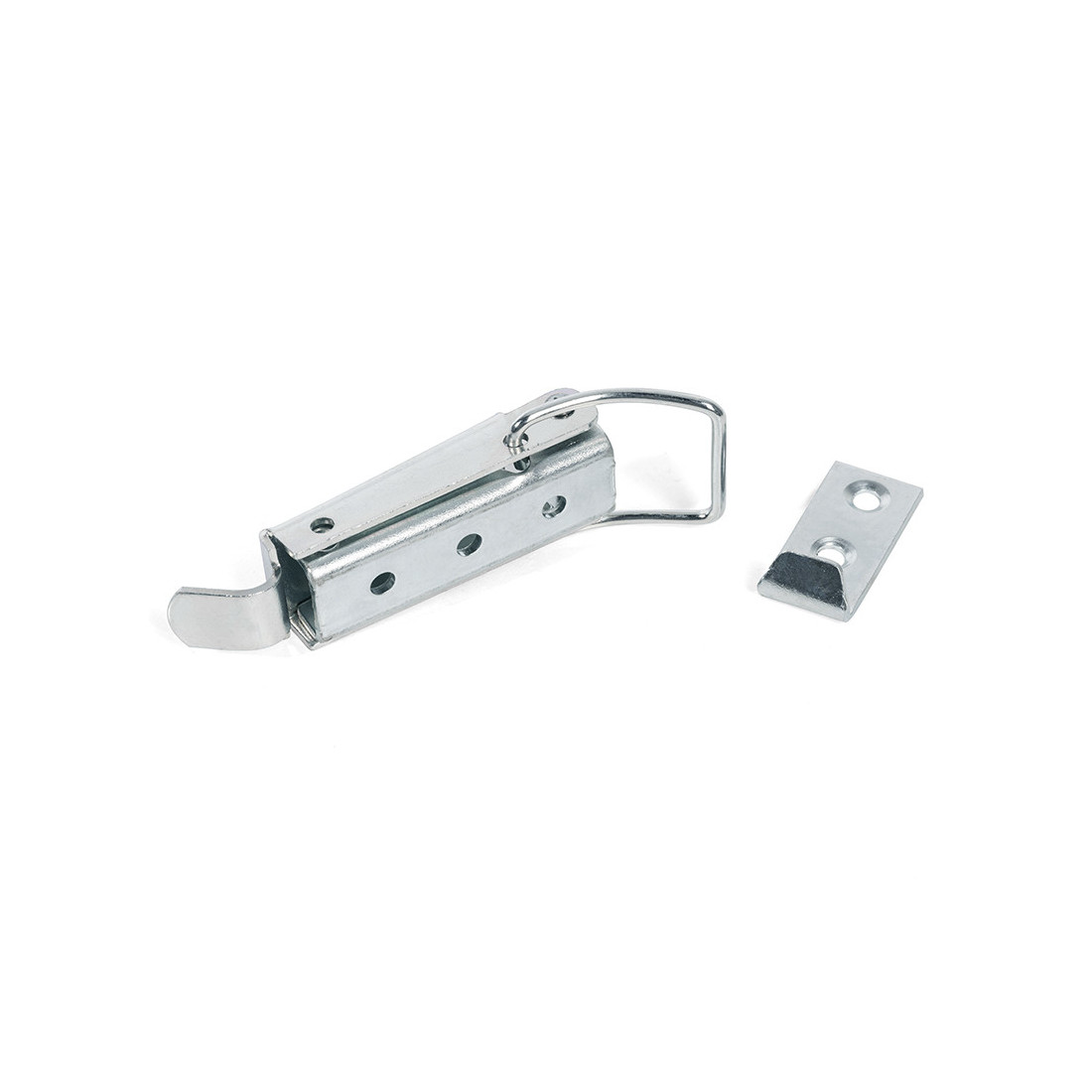 Está hecho en hierro zincado, el cierre cangrejo CICA XL 75x23 cuenta con una placa de enganche incluida para su montaje completo.