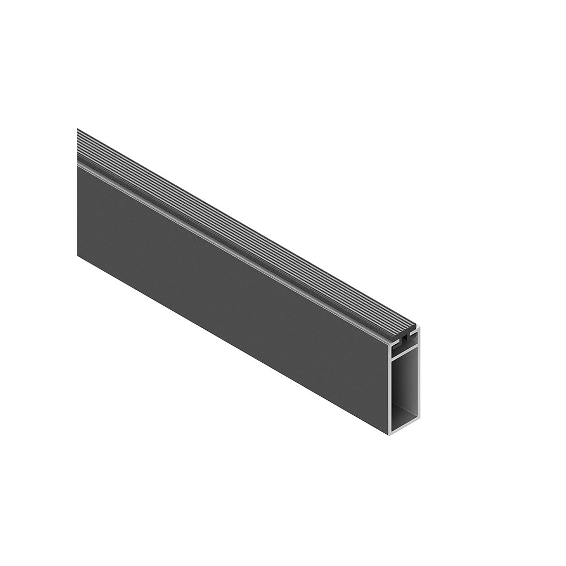 El tubo rectangular con goma superior anti-ruido para las perchas de armario de la marca ALK está hecha en aluminio y con acabado grafito. El aluminio hace que sea un tubo ligero y el color en grafito le aporta elegancia.