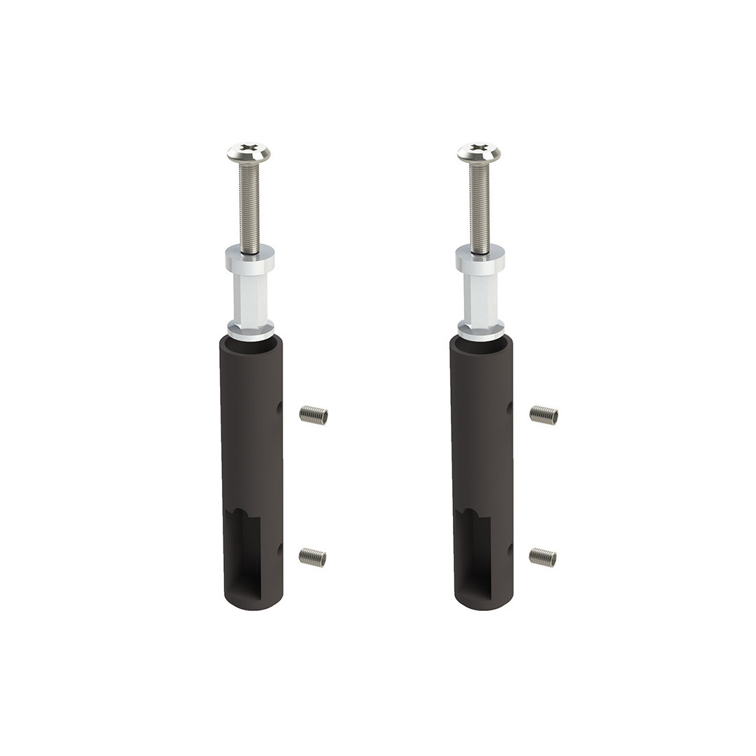 - Componentes: vástago central con tornillo Phillips avellanado, tuerca/aro hexagonal intermedio, manguito o casquillo blanco translúcido de guiado/aislamiento, cuerpo tubular y dos tornillos prisioneros incluidos