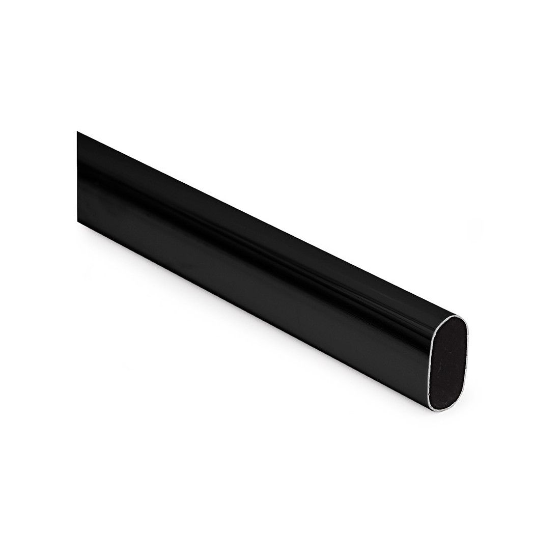 Tubo ovalado para armario de acero con sección de 30 x 15 mm, acabado negro y longitud de 3 m. Se suministra por barra y se utiliza como barra de perchero o elemento de armario para colgar ropa.