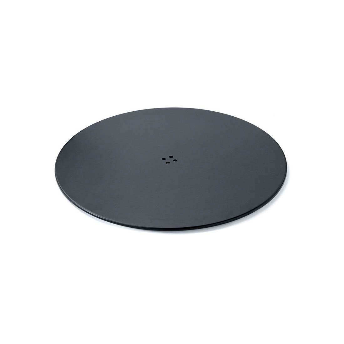 Base plana redonda RANDY Ø580 para atornillar una columna compatible y formar una mesa con tablero superior. Se suministra como base separada, no como conjunto completo. El plato circular presenta perfil bajo, geometría lisa y cuatro orificios centrales para la fijación.