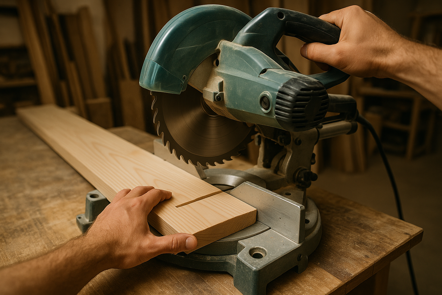 Por un lado, la sierra circular permite cortar tableros grandes, mientras que la ingletadora es perfecta para cortes en ángulo, molduras y marcos, siendo mucho más precisa y rápida al hacer los cortes.