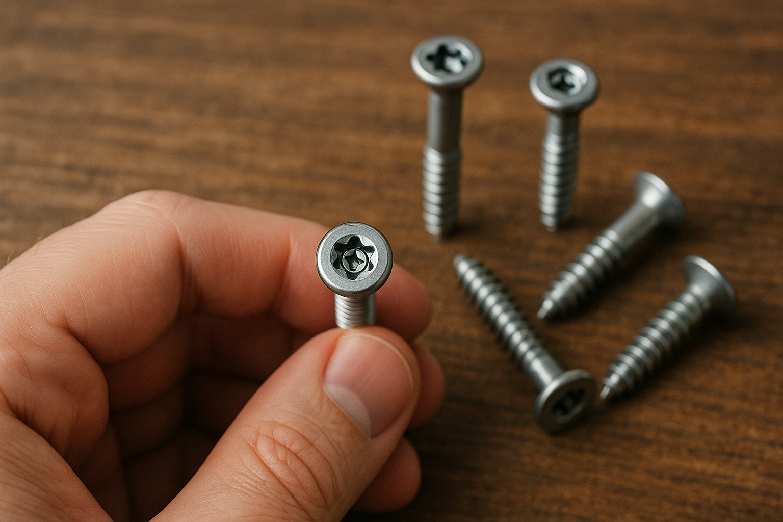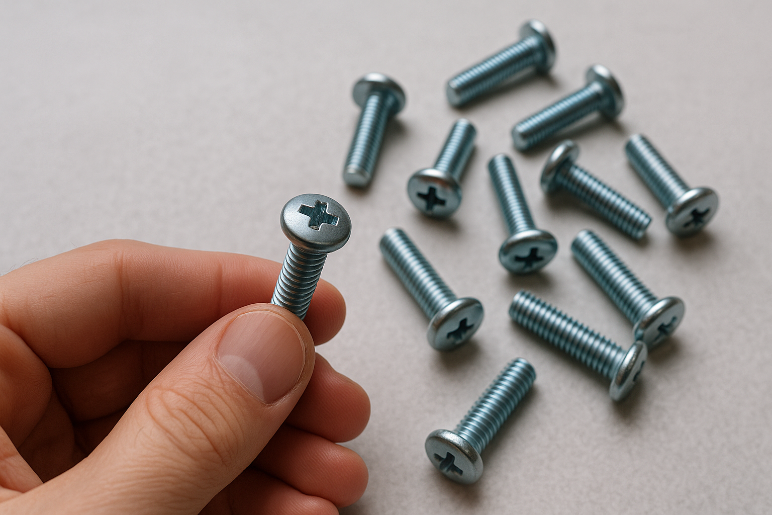 Los tornillos métricos se emplean en puertas metálicas o en sistemas industriales, donde las bisagras se fijan con tuercas o con insertos metálicos. Su rosca es uniforme y precisa, garantizando una sujeción segura y duradera.