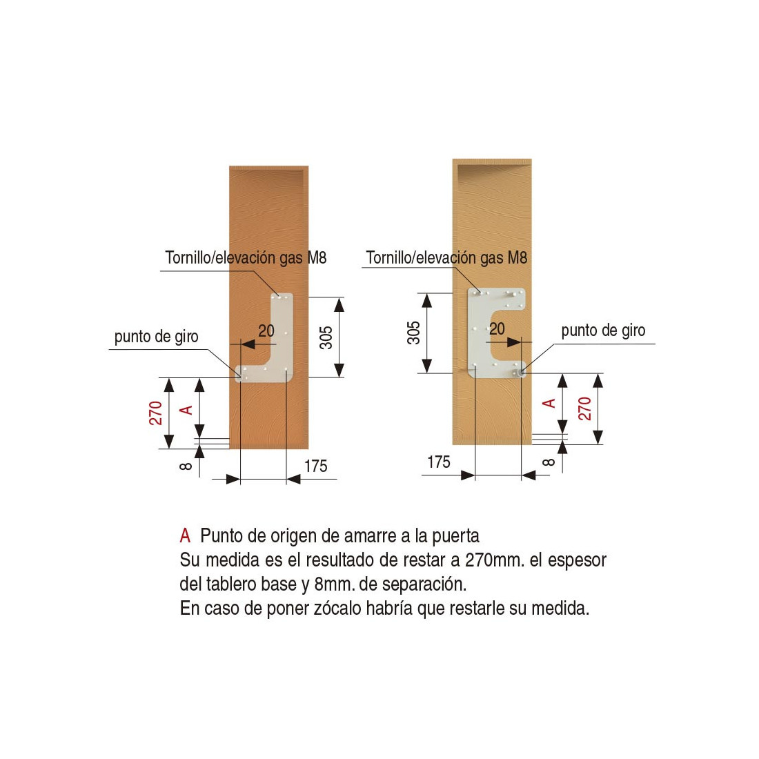 Incluye placas metálicas laterales necesarias para el montaje de una cama abatible horizontal, cubriendo desde 900 mm hasta 1.050 mm de ancho.