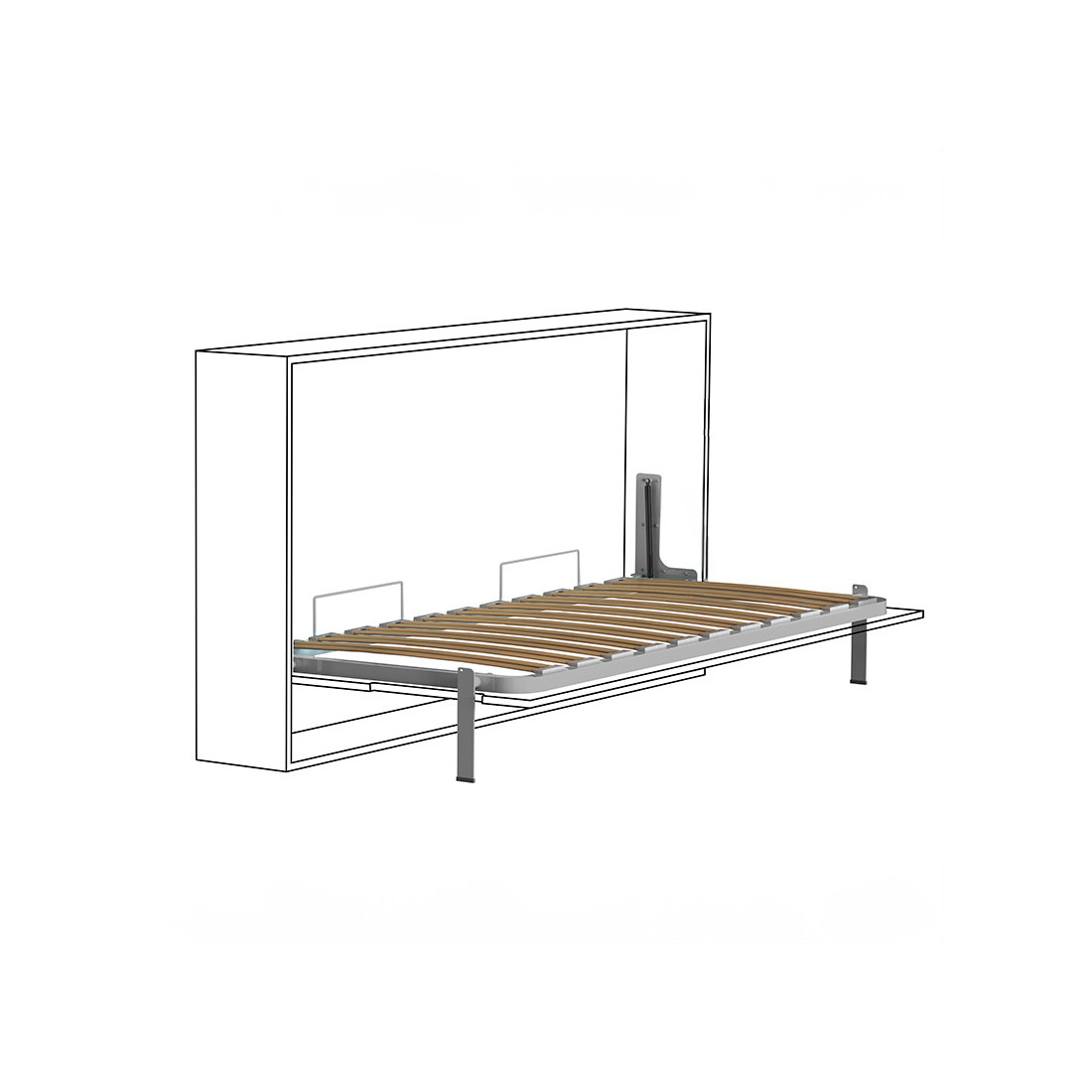 El somier horizontal de 135 x 180 cm Ref. 41.101V está diseñado para su integración en sistemas de cama abatible horizontal con apertura mediante pata basculante. Su estructura metálica reforzada en color gris texturizado aporta resistencia y durabilidad, mientras que las patas automáticas permiten una apertura suave, estable y sin esfuerzo.