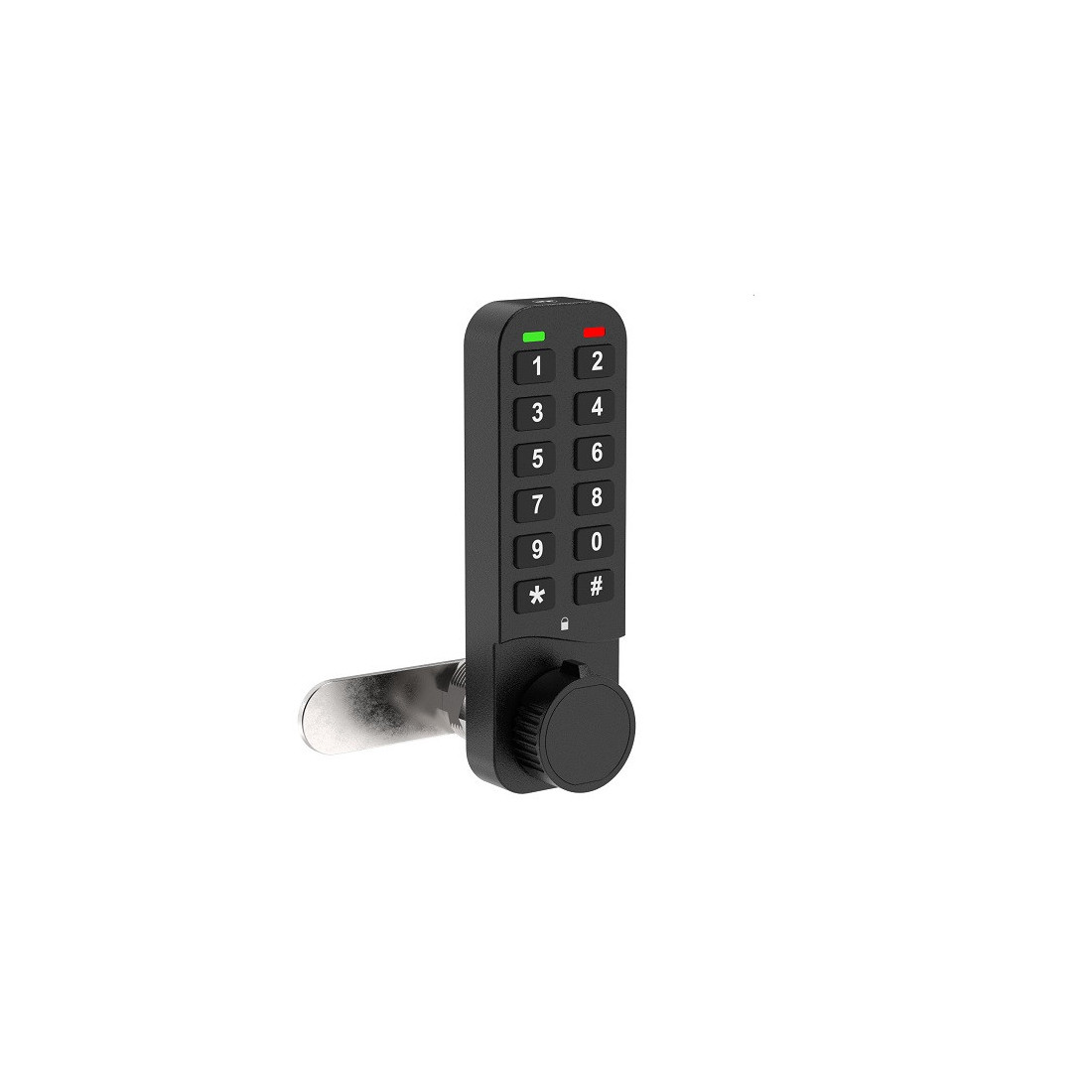 - Tipo: cerradura de apartado/compartimento con teclado numérico y leva (cam lock).
