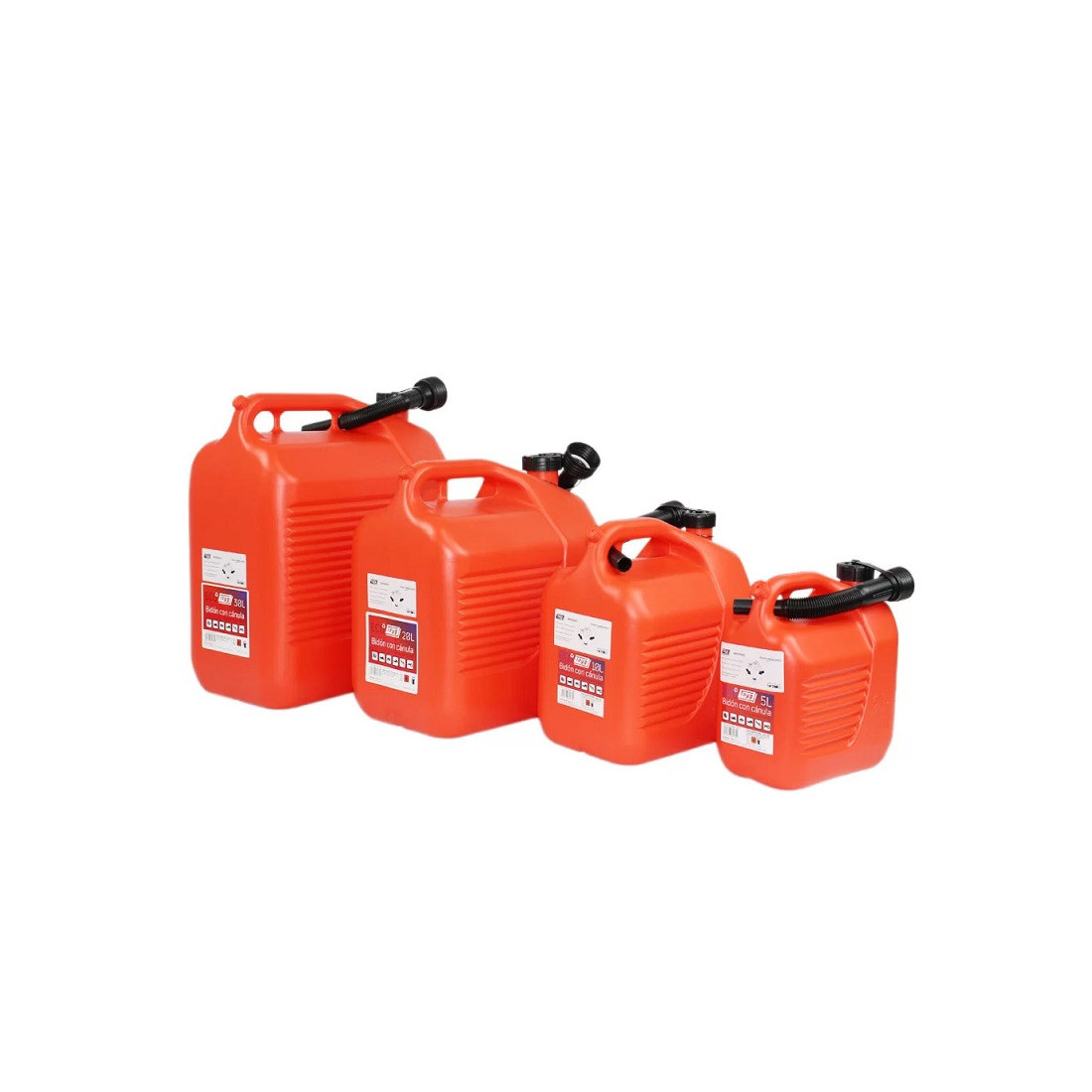 Bidón con cánula de 5 litros fabricado en HDPE, con cuerpo naranja, tapón negro de mezcla PE, junta de HDPE con recubrimiento de PE esponjoso y cánula negra de mezcla PE. Incluye tapón de purga para vaciado de gases y está apto para transporte de materias peligrosas por carretera, ferrocarril, marítimo y aire según ADR-RID-IMDG-OACI-IATA.