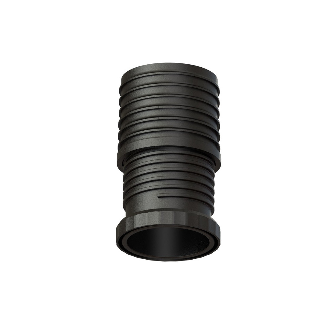 Nivelador contera de plástico negro para patas de tubo, con diámetro exterior de 80 mm y regulación máxima de 30 mm. Se utiliza como elemento de apoyo y ajuste en bases tubulares compatibles con esta medida.