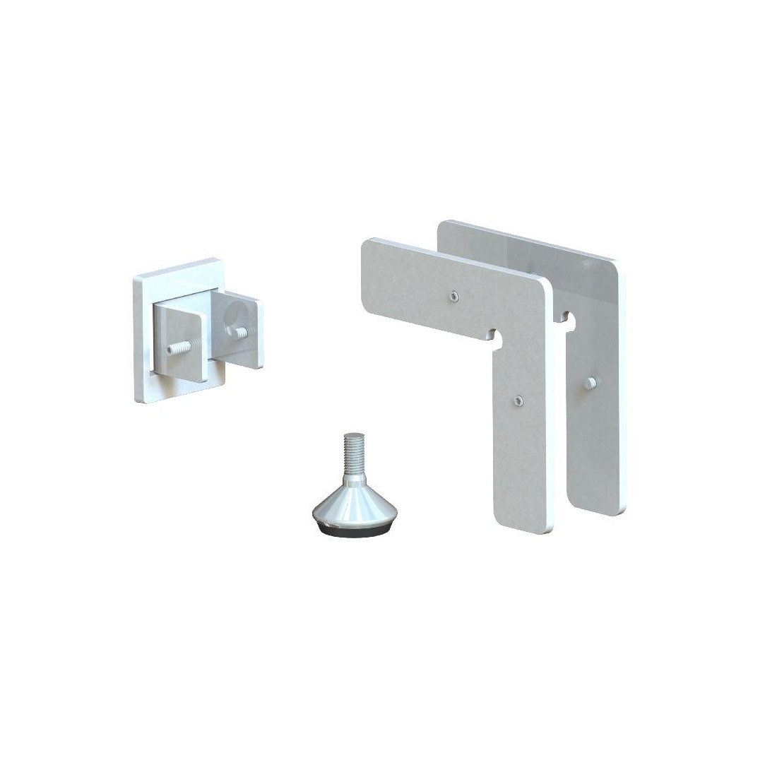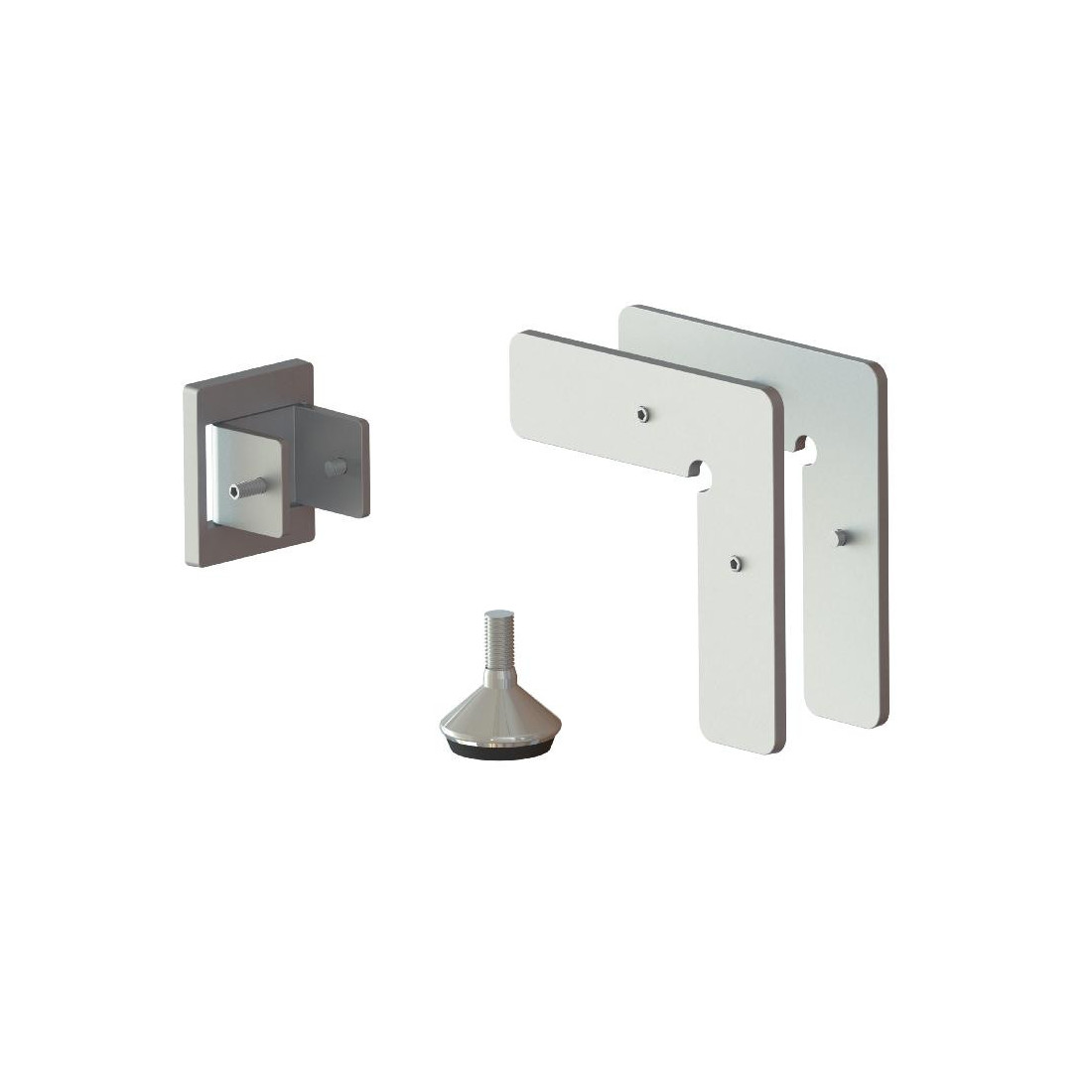 • Componentes: 1 soporte pared + 1 embellecedor; 1 juego de escuadras de unión perfil vertical y horizontal; 1 pie nivelador M8 TAKO / 1 soporte pared y 1 embellecedor; juego de escuadras de unión perfil vertical y horizontal; 1 pie nivelador M8 TAKO / Soporte pared y embellecedor; juego de escuadras de unión perfil vertical y horizontal; pie nivelador M8 TAKO