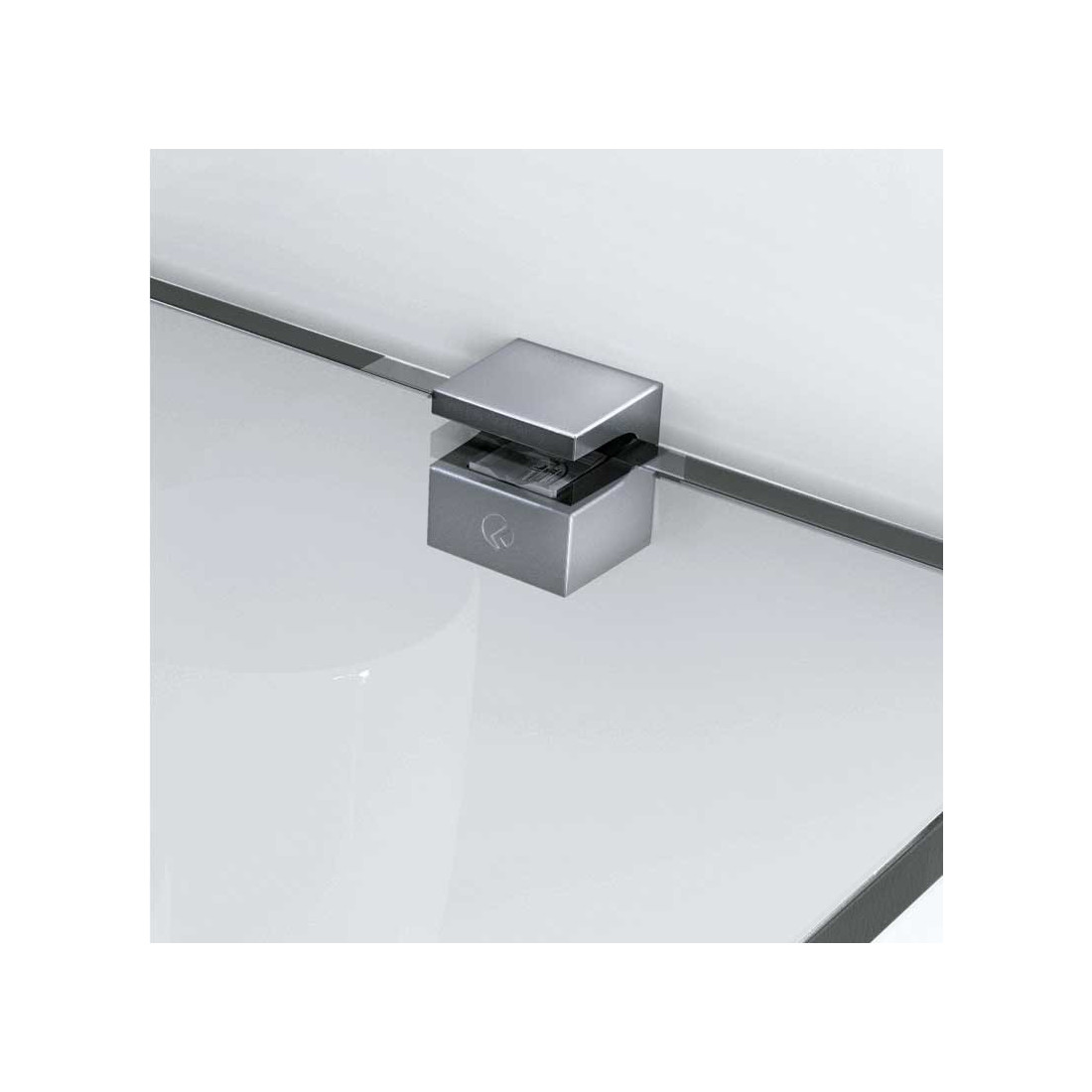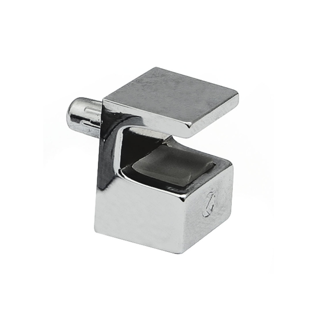 Soporte de estante para cristal KRISTAL con cuerpo de zamak y acabado níquel. Está diseñado para fijación de vidrio con espiga Ø5 y admite cristal de 5 a 6 mm.