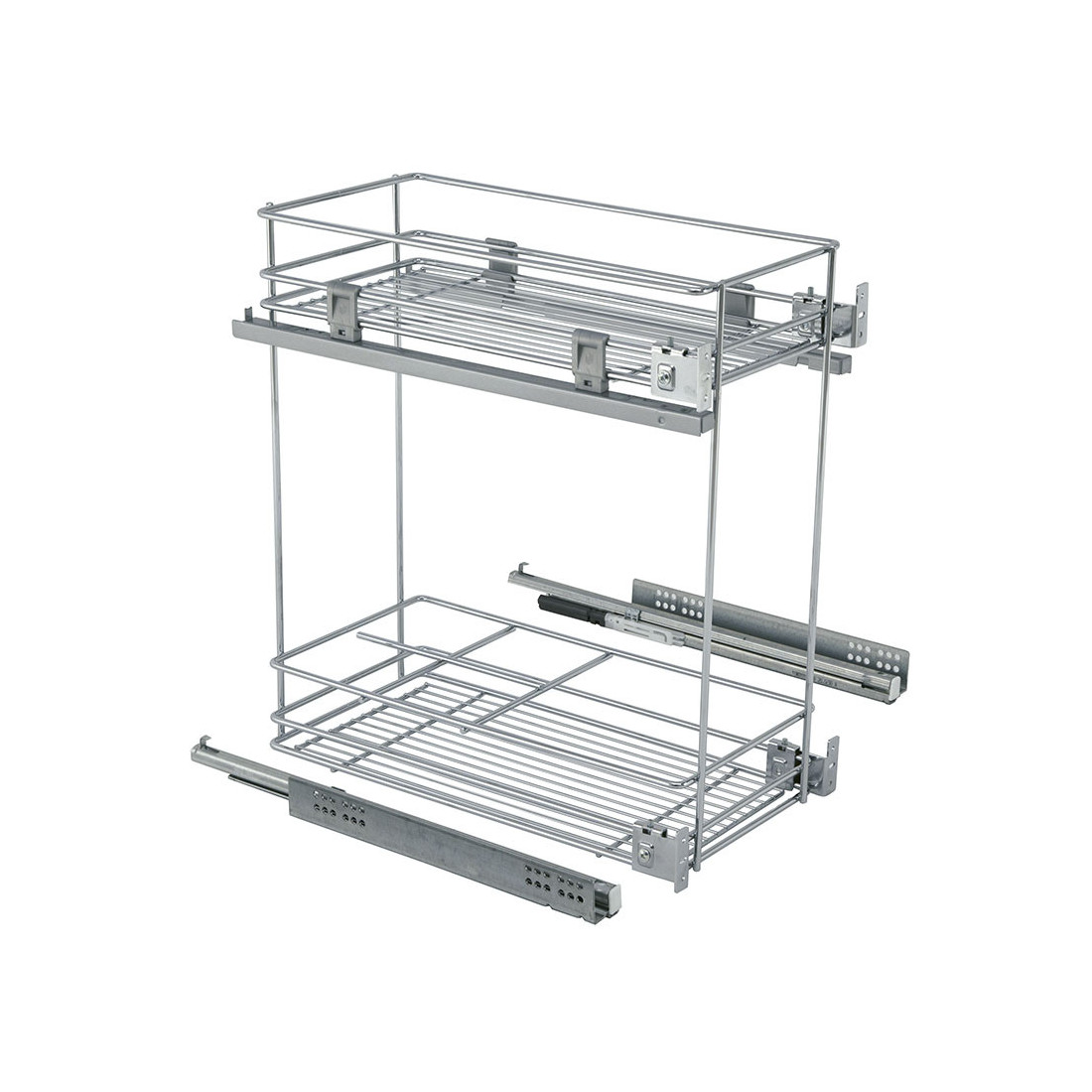 Botellero extraíble PARTNER M600 para mueble de cocina o módulo despensa, con estructura de varilla de acero, bandejas de alambre y acabado cromo brillo. El sistema incorpora guías Hettich con fijación lateral, extracción parcial y cierre amortiguado. El conjunto no es reversible y se monta en el lateral del módulo.