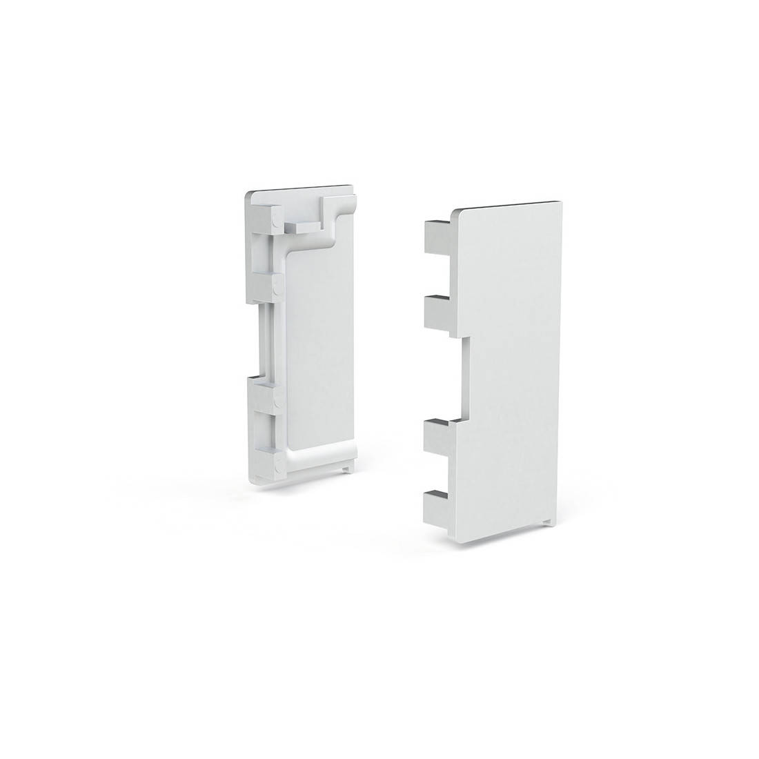 Laterales derecha e izquierda para Gola J fabricados en zamak con acabado plata mate. La pieza se utiliza como accesorio de fijación para perfil GOLA J y GOLA C en rincón o esquina. Se suministra en un envase con dos unidades.