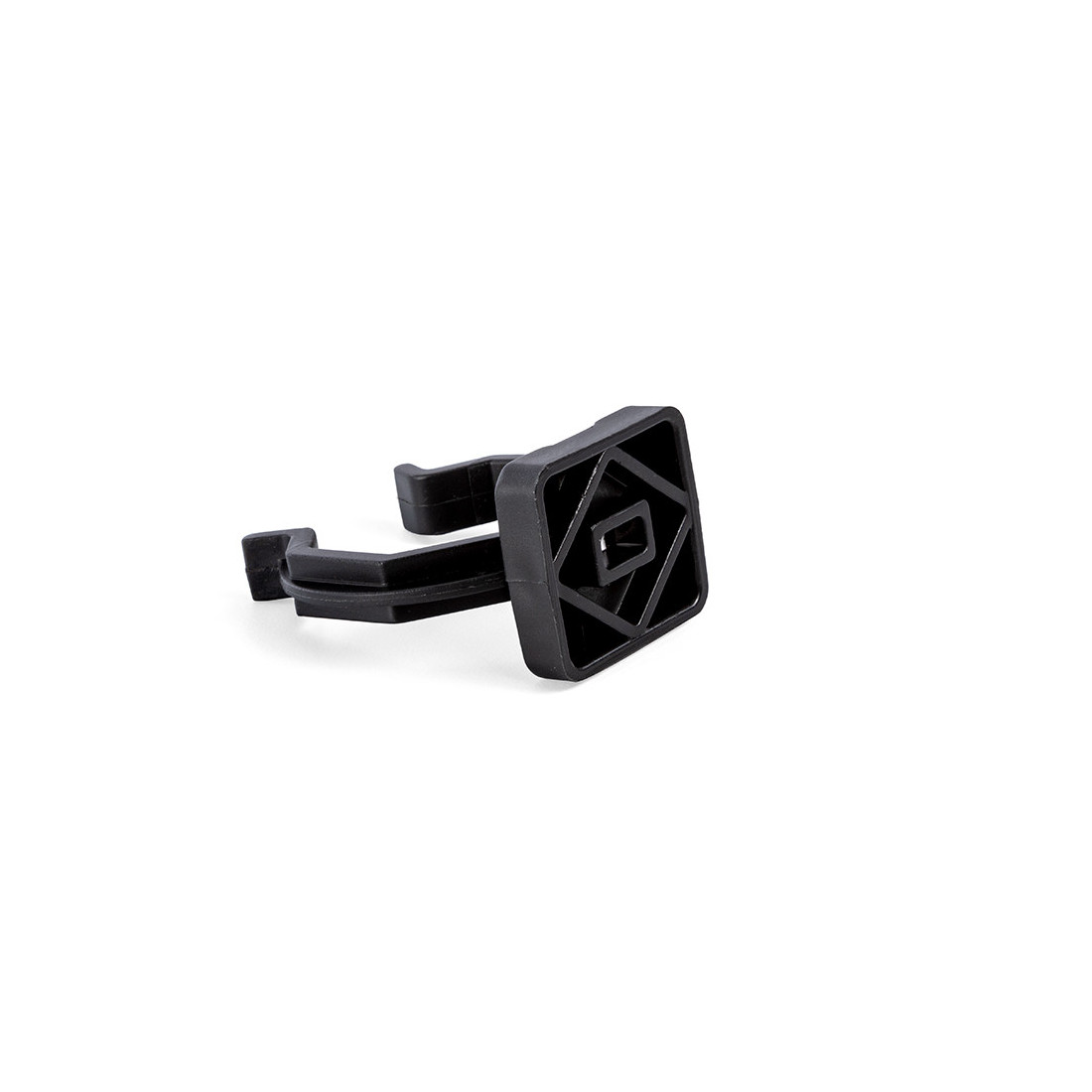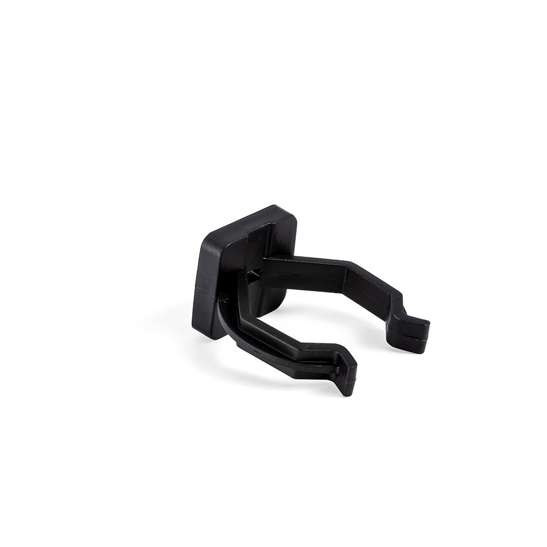 Pinza plástica OCTO para zócalo de madera fabricada en plástico de inyección negro. Es un clip de fijación rápida para sujeción de zócalos de madera, con cuerpo compacto y geometría abierta para enclavamiento a presión.
