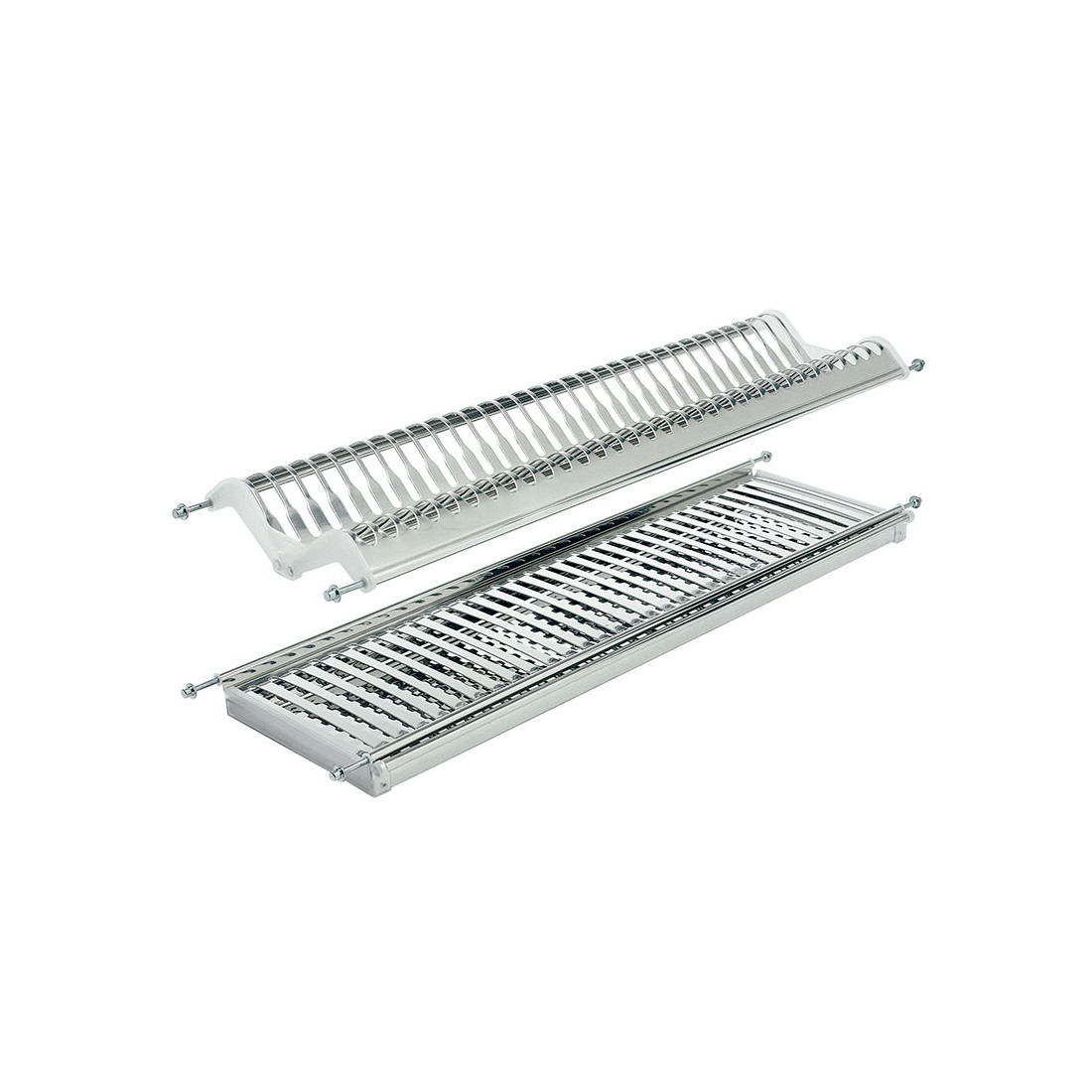 Escurreplatos y escurrevasos de acero inoxidable AISI 304 con bandeja recogeagua incluida para montaje en mueble de 800 mm. La referencia corresponde a la serie INOXMATIC y está acabada en inox brillo.