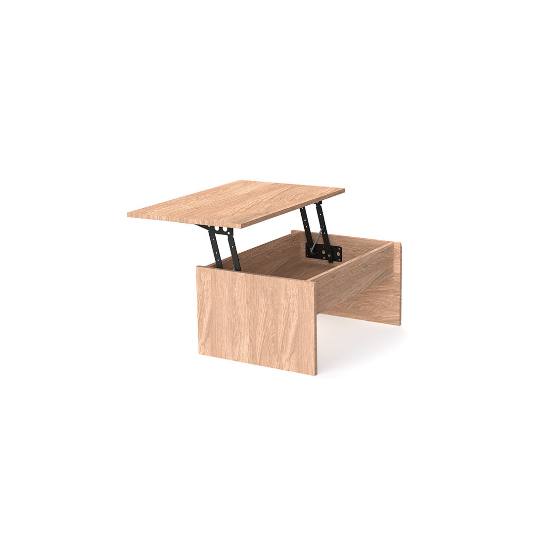 Es una pieza de fijación y movimiento para fabricar mesas de café elevables, mesas de centro transformables y muebles auxiliares con tapa móvil. Su sistema permite elevar la encimera hacia delante y disponer de una altura más cómoda para comer, trabajar o apoyar objetos.