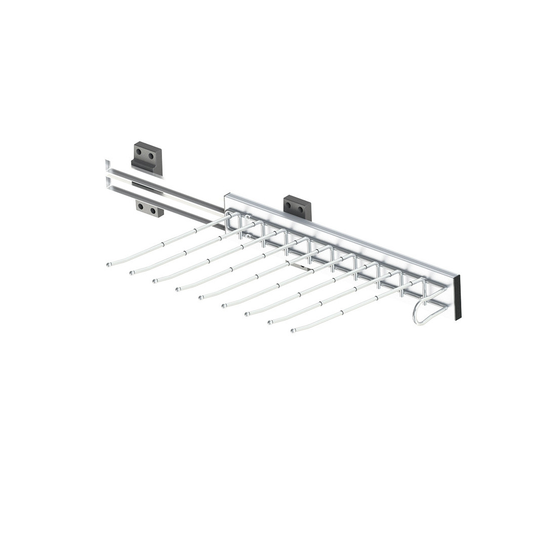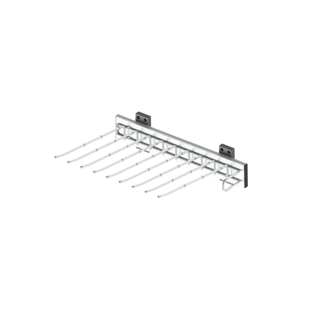 Perchero pantalanero lateral para armario con sujeción lateral y acabado cromo. Está fabricado en aluminio y se monta como elemento de interior de armario para organizar prendas o accesorios en una estructura abierta.