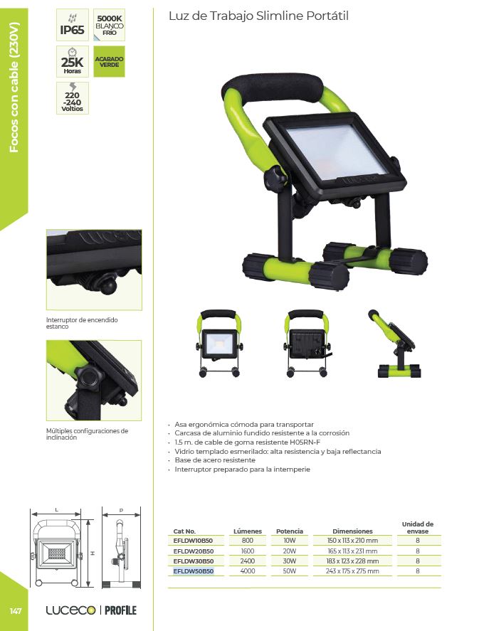 FOCO PORTATIL LUCECO 50W 4000Lum 5000K IP65 CABLE 1,5m SCHUKO EFLDW50B50-E5