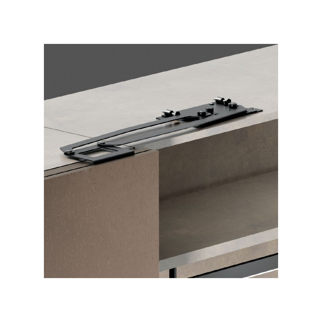 Instalación recomendada: elige el kit según el ancho del módulo (900/1000/1100/1200 mm), coloca el mecanismo en la parte superior del armario y monta las bisagras según el mecanizado indicado. Cuelga y une las dos hojas, y termina ajustando en 3 ejes hasta lograr una apertura suave y alineada.