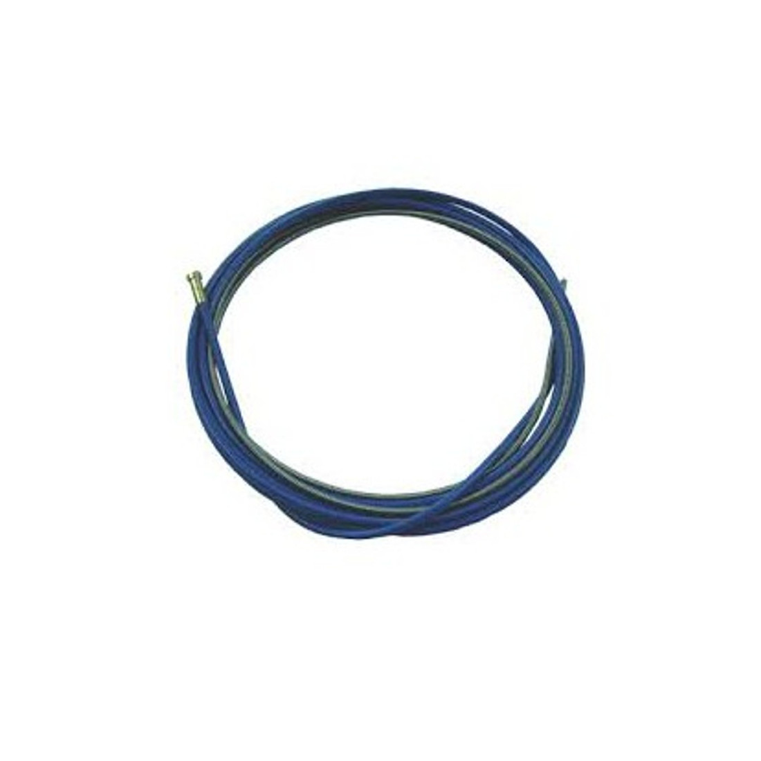 Sirga forrada azul de 3 m con cable recubierto en plástico y diámetro de 0,6-0,9 mm. Presenta acabado azul y un extremo con terminal metálico pequeño tipo casquillo o puntera.