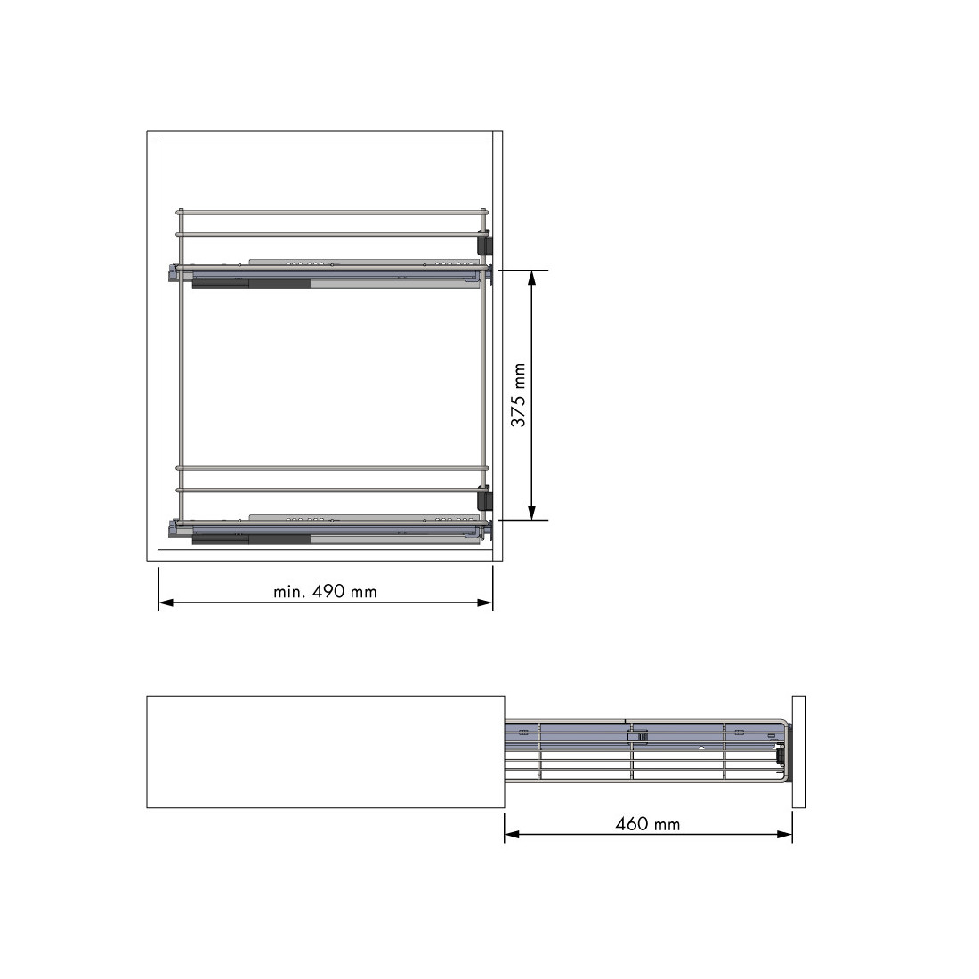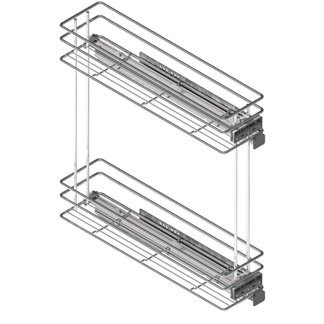 El módulo botellero CLASSIC extraíble de 2 alturas es una solución práctica para organizar botellas y recipientes dentro de muebles de cocina. Fabricado con bandejas de acero cromado, permite un acceso cómodo gracias a su sistema de extracción parcial con cierre suave. Incorpora fijación lateral con enganches regulables compatibles con puertas de espesor entre 16 y 19 mm. Capacidad de carga de hasta 25 kg.