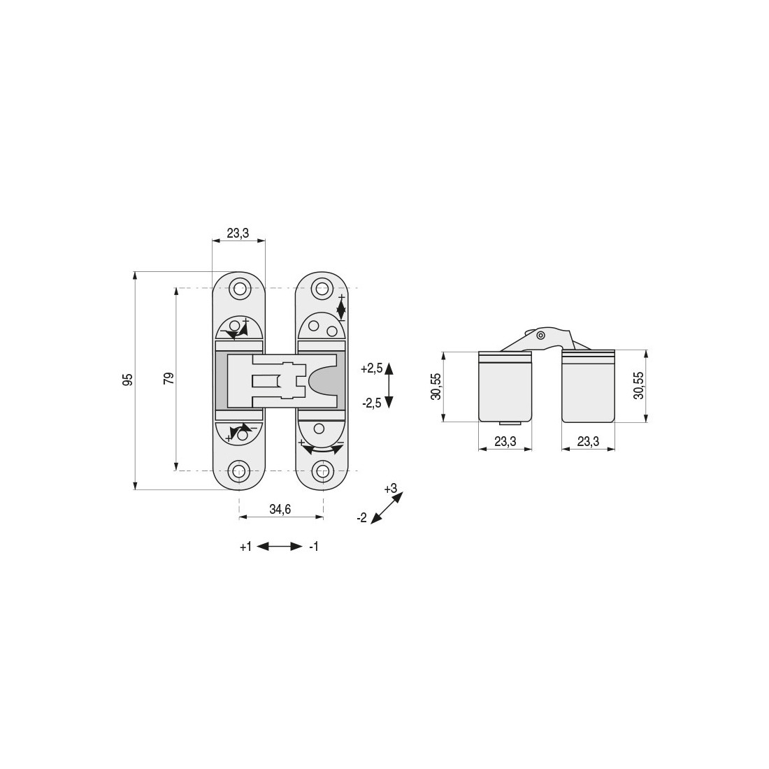 K-6300 Bisagra invisible. Regulable. Para puertas de 60kg. 180º