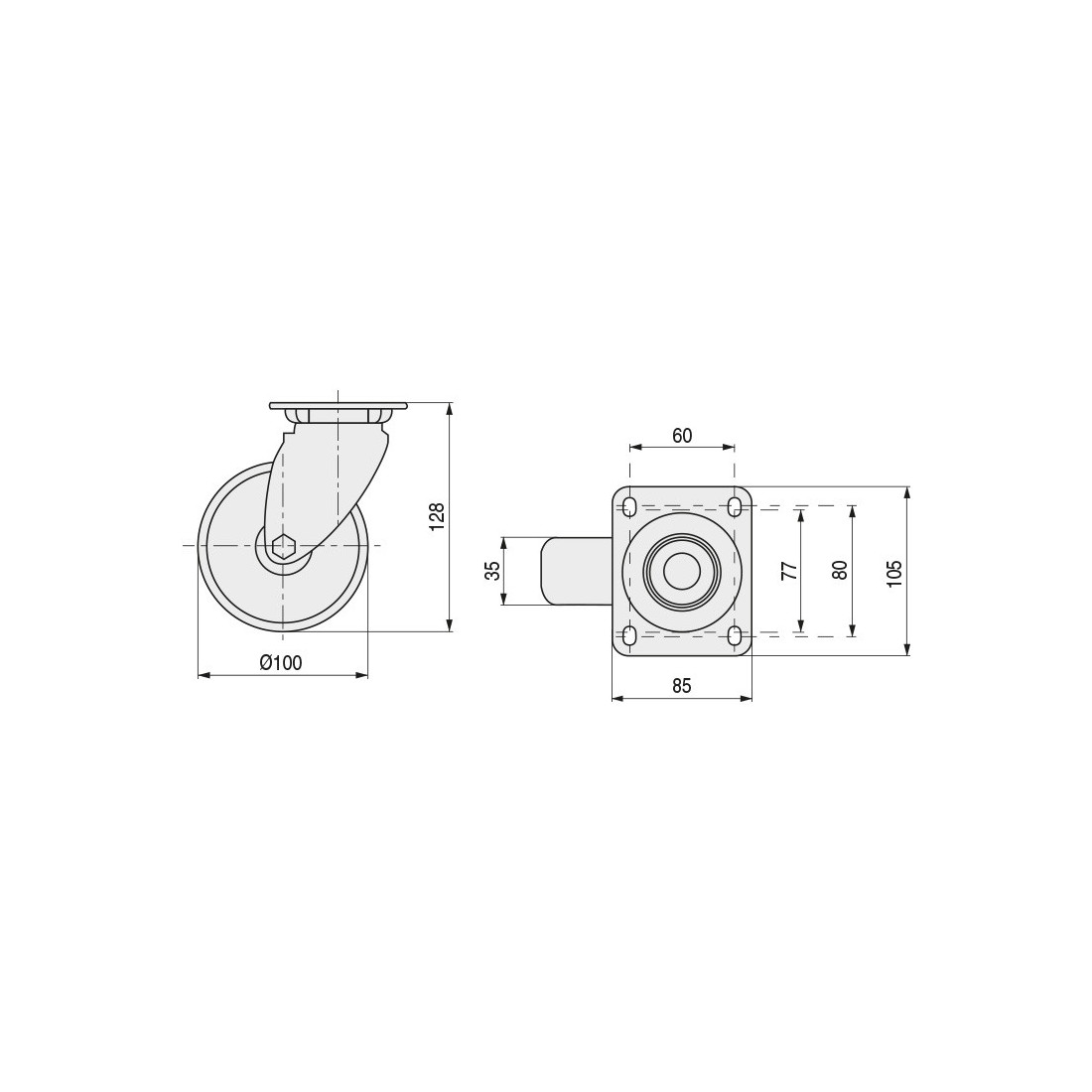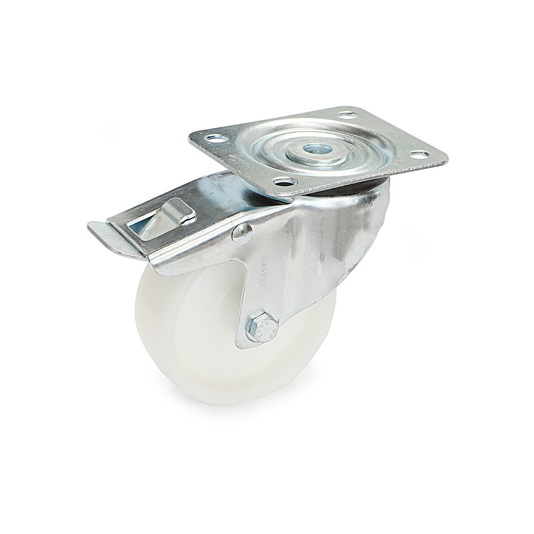 · La rueda también está disponible con palanca de freno trasera metálica que bloquea totalmente la rueda: hace tanto freno direccional como giratorio.