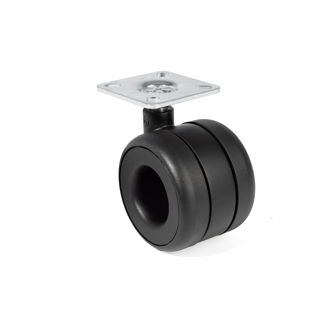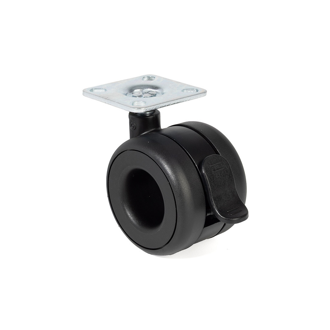 Rueda giratoria plástica KOO aro doble Ø60 mm acabados negro, con freno / sin freno