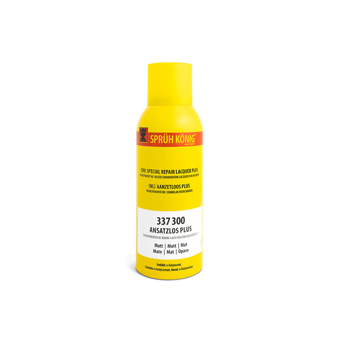 Es un spray de laca o barniz de reparación en aerosol con base nitrocelulósica y acabado mate.