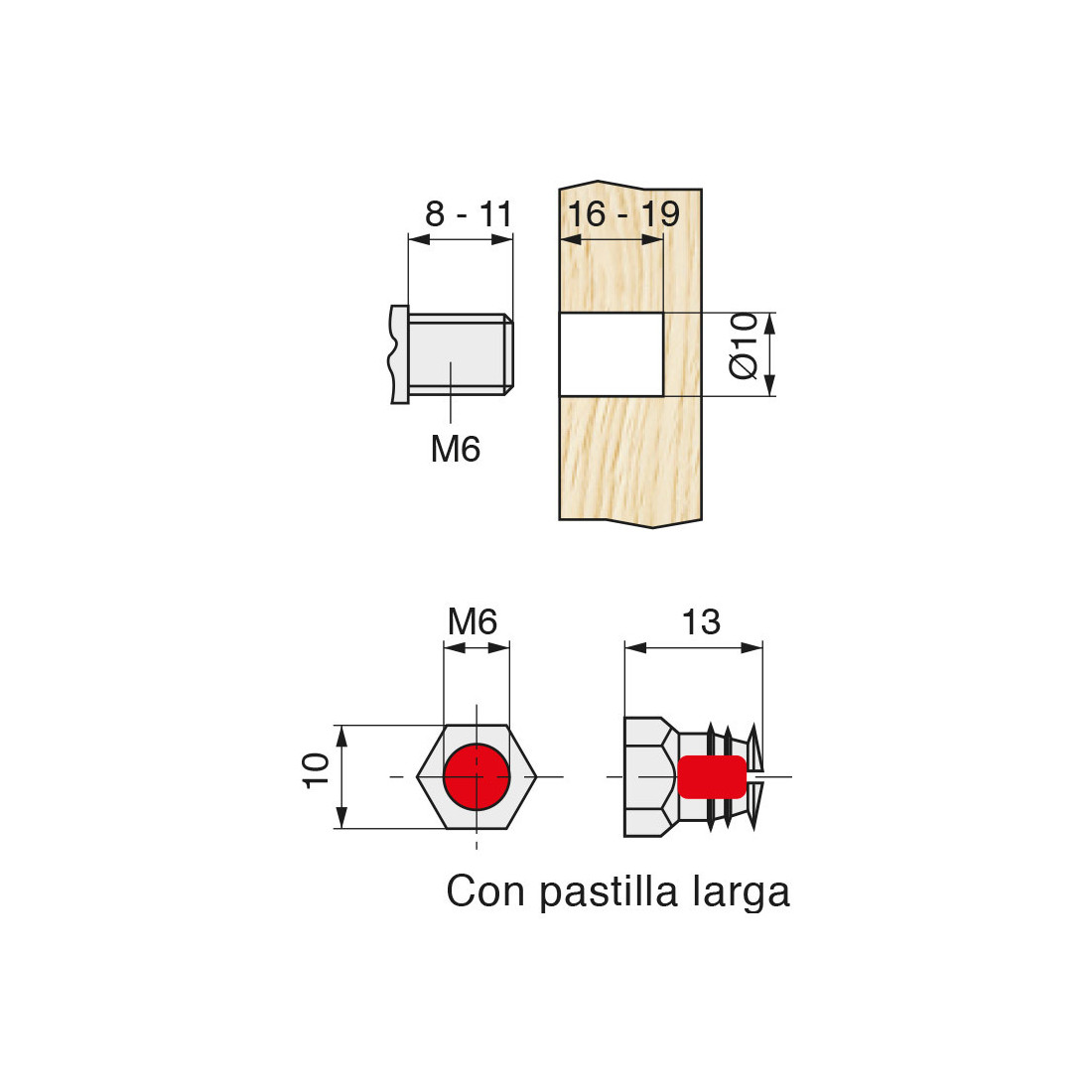 Para un perfecto agarre, taladrar según el largo a roscar del tornillo dentro de la tuerca.