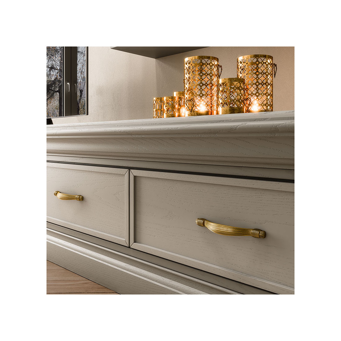 Disponible en acabados plata vieja y Antica Firenze, aporta personalidad a cualquier mueble. Las versiones con dos agujeros se ofrecen en distancias de 96 y 128 mm.