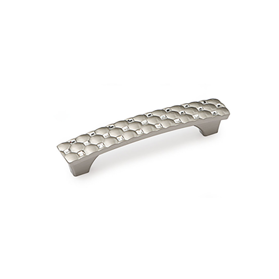 Tirador de mueble fabricado en zamak, con acabado níquel satinado y decoración con cristales Swarovski®. La fijación es oculta desde la parte trasera y se utiliza en cajones y puertas de mueble.